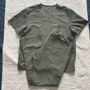 EUC men’s size XL FIGS scrub set in khaki green