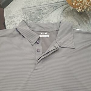 GREAT GREY STRIPPED SHIRT WITH 3 BUTTONS, THIN AND BREATHABLE GREAT FOR SUMMER, SIZE L PIT TO PIT 21 L 29 BUNDLE AND SAVE$$ PAY 1 SHIPPING COST FROM ME!