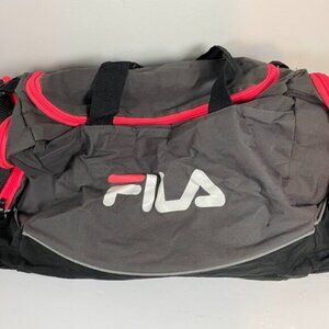 Relevant Keywords: FILA gym bag, sports duffel, athletic travel bag, training gear bag, workout tote, unisex gym duffel, carry-on duffel, used FILA bag