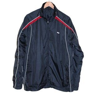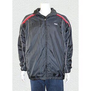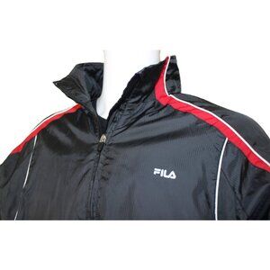 FILA Windbreaker Jacket - Retro Black with Red & White Trim - Unisex Size XL