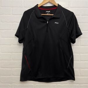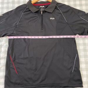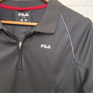 Fila athletic clothing black short sleeves sweater in medium . This Fila running shirt is in good pre-own condition! Not new but still have a great life ahead!