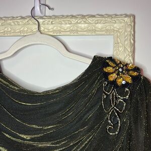 FILIGREE LTD | Vintage 80s Dynasty Glam Draped Sequins Elegant Black Maxi Dress