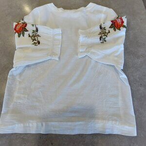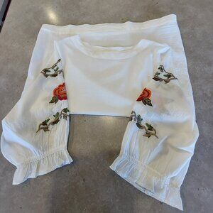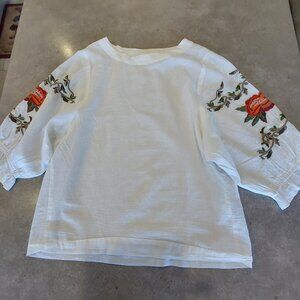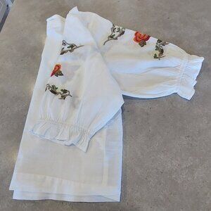 FILLEL Women's White Blouse w/3/4 Embroidered Design Puff Sleeves - Sze Large