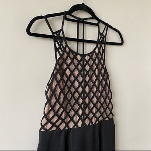 Feminine and fabulous, this stunning dress from Finders Keepers flaunts a chic interwoven overlay and a sultry cut. Crafted in a classy beige hue with a strappy back, this one makes a perfect choice for modish evening wear.