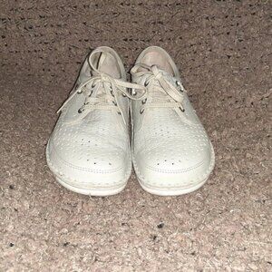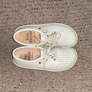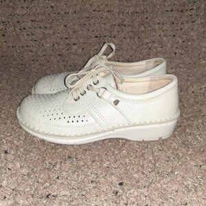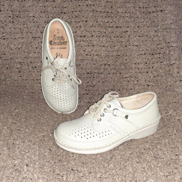 FINN COMFORT-Baden-Grey/Beige Pebbled Perforated Leather-Sz 37 D-Excellent