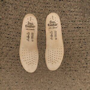 Marked size 6 (think it's UK), about an 8 US, measures 10.25" via removable insole, 10.75" via sole, 3.75" wide with 1.75" heel.