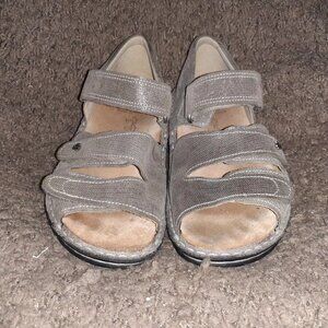 Nice pair of Finn Comfort 3 strap sandals with full heel.