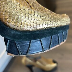 FINSK Platform Gold Faux Snakeskin Open Toe Stiletto Heels size Made in Italy