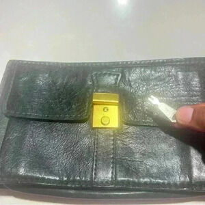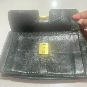FIOCCHI ITALY BLACK LEATHER MESSENGER BAG MINI BAG WITH LOCK KEY