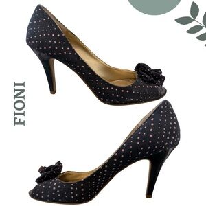 FIONI Navy Blue w/ Pink Polka Dot Peep-Toe Heels Flower Detail โ Size 8.5