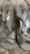 Shimmer with these silver glitter heels. Strappy design for a chic look. Ideal for special occasions. Buckle closure. Excellent condition, barely worn. Slight imperfection at front right toe and back left heel as pictured.