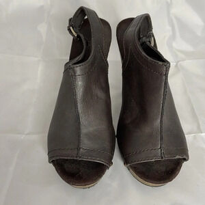 FIONI Slingback Platform Heels Brown Boho Vegan Leather Studded Peep Toe 8.5