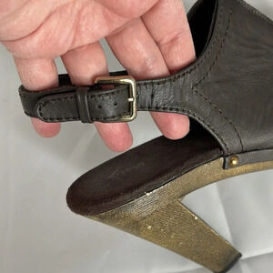FIONI Slingback Platform Heels Brown Boho Vegan Leather Studded Peep Toe 8.5