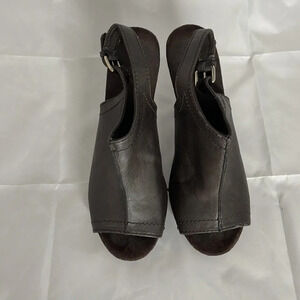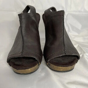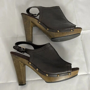 FIONI Slingback Platform Heels Brown Boho Vegan Leather Studded Peep Toe 8.5