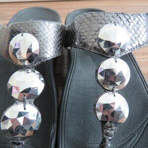 FITFLOP Petra Thong Toe Post Flip Flop Sandals in Metallic Pewter Snake Print - Size US 6