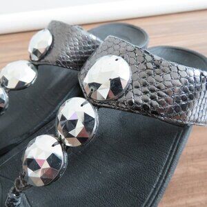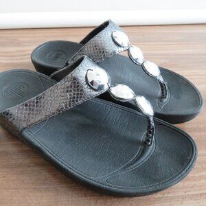 FITFLOP Petra Thong Toe Post Flip Flop Sandals in Metallic Pewter Snake US 6
