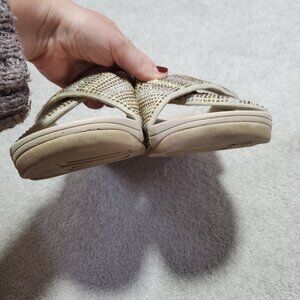 FITFLOP Slip-On Sequin Strobe Slide Sandals Stretch Beach Gold Silver Women's 11