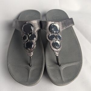 FITFLOP Women Wedge Sandals Flip Flop Size 7 Gray Color Shinny