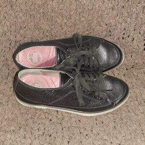 This FITFLOP Supertone Sneaker in Metallic Pewter Leather is a stylish and comfortable lace-up sneaker designed for women in US size 6 (UK size 4).