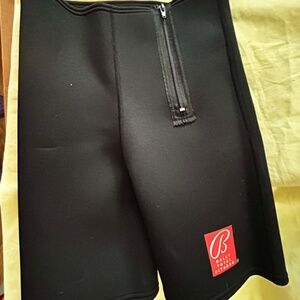 FITNESS SHORTS, BALLY TOTAL FITNESS, BLACK, LADIES MEDIUM, RUBBER WITH FABRIC, 6 INCH SIDE ZIPPER, NEVER WORN