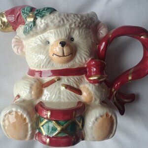 Fitz & Floyd 'Omnibus'1995 hand-painted porcelain Christmas teddy bear pitcher