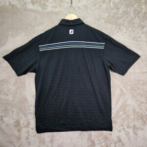 FJ Footjoy Polo Shirt White Blue Green Stripes Golf Black Short Sleeve Men's XL