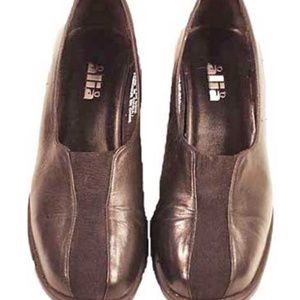 FLATS, LEATHER, COMFORT STRETCH PANEL, Sz 7.5B, BLACK, HEEL 1 3/8 inch,, RUBBER SOLES, SOFT LEATHER BY ALIA, WORN ONCE IN FASHION SHOW, LOOK UNWORN