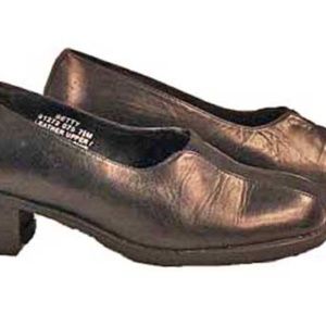 FLATS, LEATHER, COMFORT STRETCH PANEL, Sz 7.5B, BLACK, HEEL 1 3/8 inch,, RUBBER