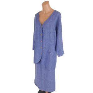 FLAX Linen Jacket & Skirt Set Plus Size Generous 2G 20/22 Blue NWOT $495