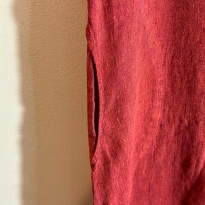 FLAX Petite Sz L (estimated from measurements) Dress Aline Pockets 100% Linen Midi Length Unlined. Lovely dark brick red colour way. Scoop neck.