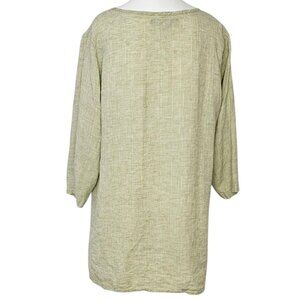 FLAX Womens 100% Linen 3/4 Sleeve Tunic Shirt, Green, lagenlook, Size M