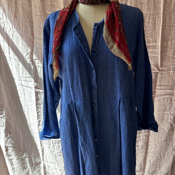FLAX blue long linen summer coat/jacket/dress. NWT