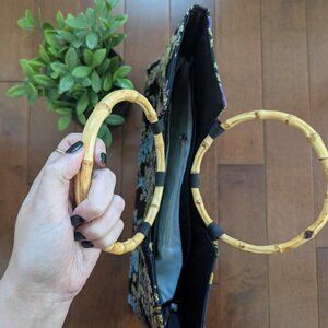 FLORAL BAMBOO HANDLE VINTAGE SATIN HANDBAG