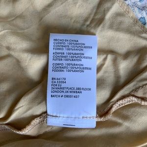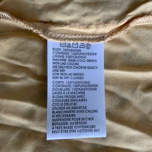 Materials: body 100% rayon, contrast 100% polyester, lining 100% rayon