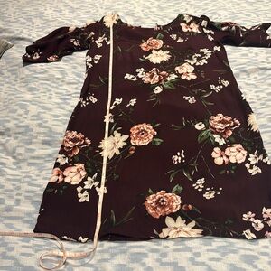 Floral print summer dress, round neck with back keyhole button closure, elbow length split sleeves. Straight line cut, can be belted- belt in pic for style reference only. No rips, tears or stains from SFPF home. No labels, listing as size Small but pls see pics for measurements.