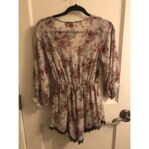 Very cute floral romper with lace Size small Warn a couple of times Cold washed only, never used dryer