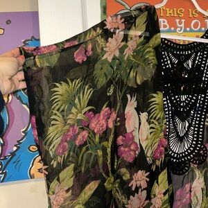 FLORAL TROPICAL MESH SEE-THROUGH KIMONO PONCHO CARDIGAN BOHO SWIMSUIT COVER
