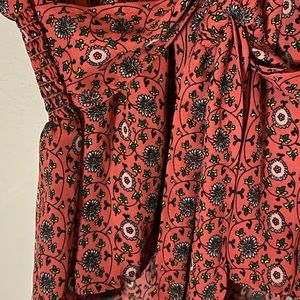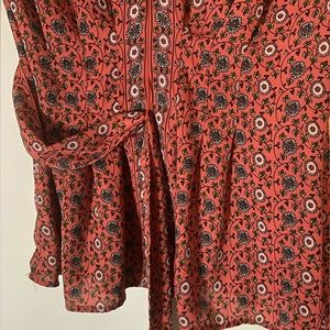 FLORAL Tunic (S) Relaxed V-neck with Butterfly Sleeve, Signed Back/Belted Waist