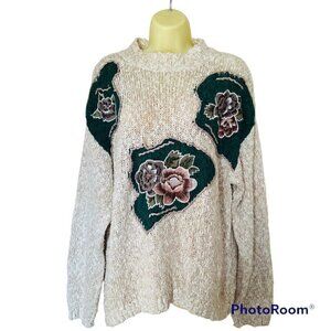 Fairbrook Floral Winter pullover jumper Sweater-Women's Sweater-Knit Jumper-Boho hippie Knit-Beige Acrylic Sweater-Crew Neck Pullover-Large