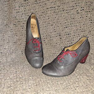 These FLY GIRL/FLY LONDON in a purple hued gray with red leather carved heels booties in size 41 are a stylish and versatile choice for any woman's wardrobe.
