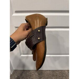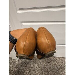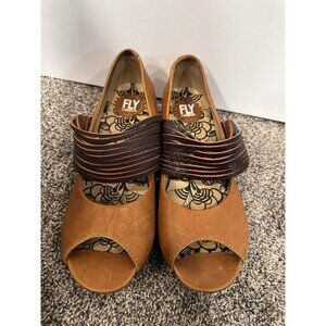 FLY LONDON ~ "LAFF" EUR 38 Peep-Toe Strap Ballerina Camel Dark Brown EUC