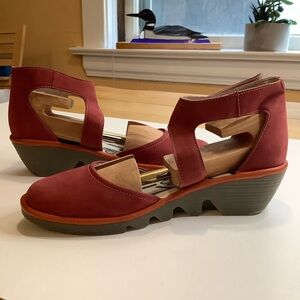 FLY LONDON Rust 'Piat' Platform Wedge Sandals Size 39