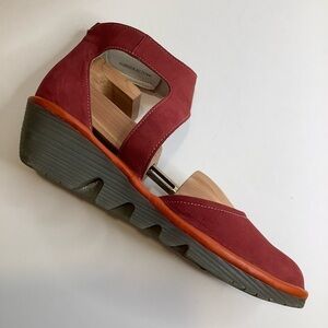 Perfect for day to night wear the piat from Fly is a fantastic choice. This quirky wedge shoe has a soft nubuck leather upper, the asymmetric strap is supportive and fastens at the ankle. The gentle wedge has a 4 cm heel that will mean you are comfortable all day. The textured rubber wedge sole helps to give the piat their distinctive Fly style. The soft leather lining makes the piat instantly comfortable. This wedge shoe will look fantastic with a skirt, trousers or dress.