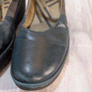 FLY London Green Blue Leather Suede Mary Jane Wedge Heels