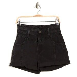 High-waisted black denim shorts with seamed detailing. Great condition.