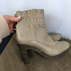FLY LONDON chunky heel ankle booties cream leather size 7