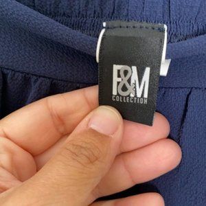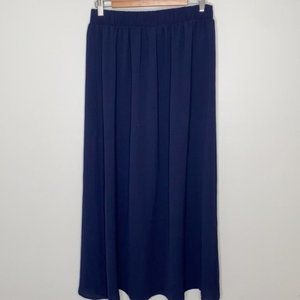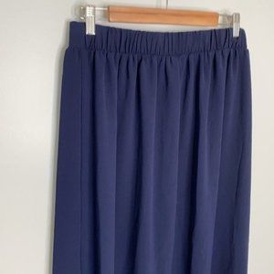 F&M Collection Women Navy Blue Long Pleated Maxi Skirt With Slit Size Large