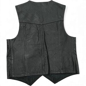 FMC Black Leather Snap Button Biker Motorcycle Vest Men's Large 46