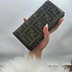 ❤️ Long wallet in iconic zucca printed canvas and cowhide leather trim.