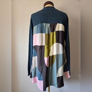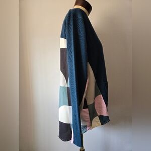 FOIL Blue Merino Wool Blend Sweater with Chiffon Pastel Multicolor Back. Medium